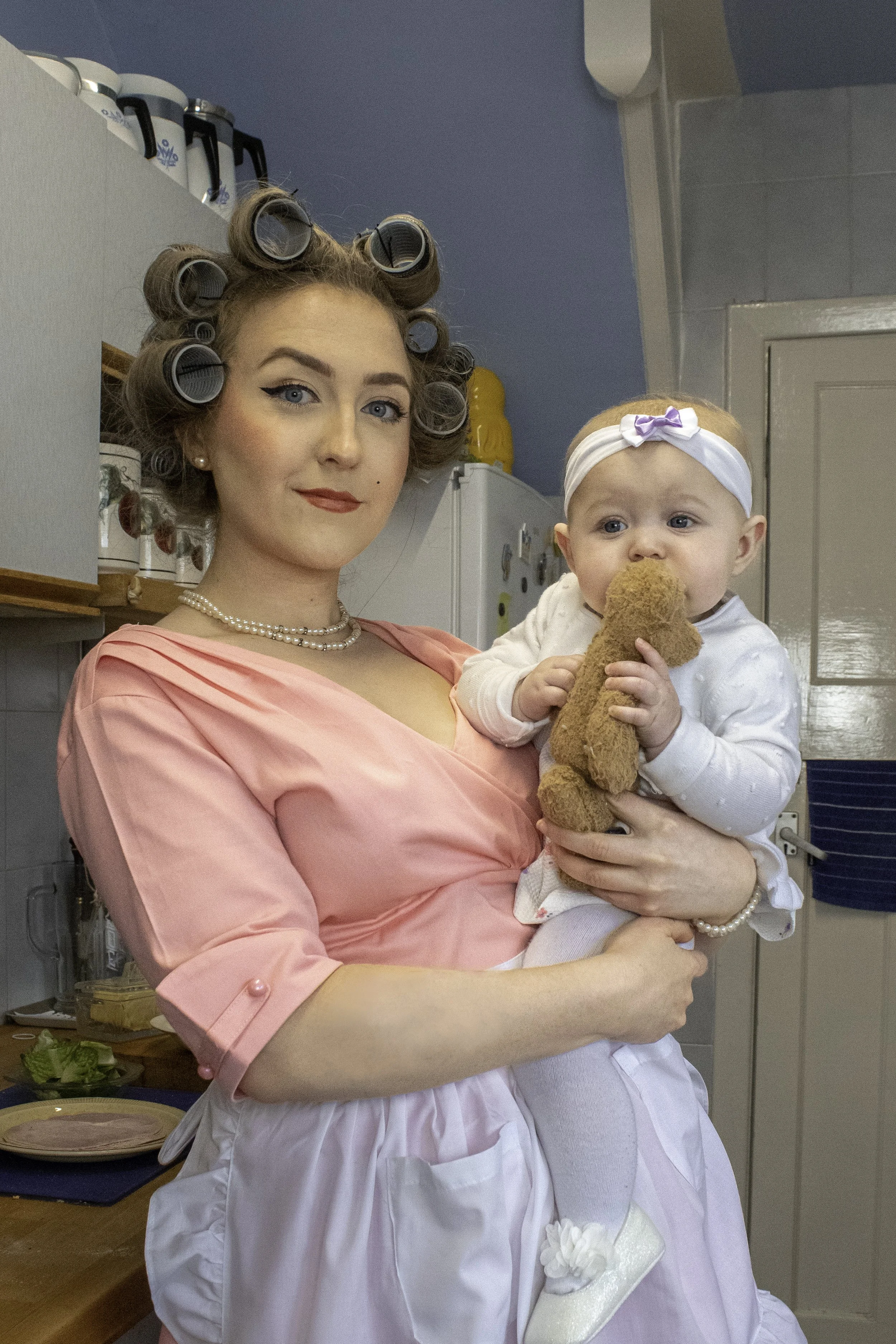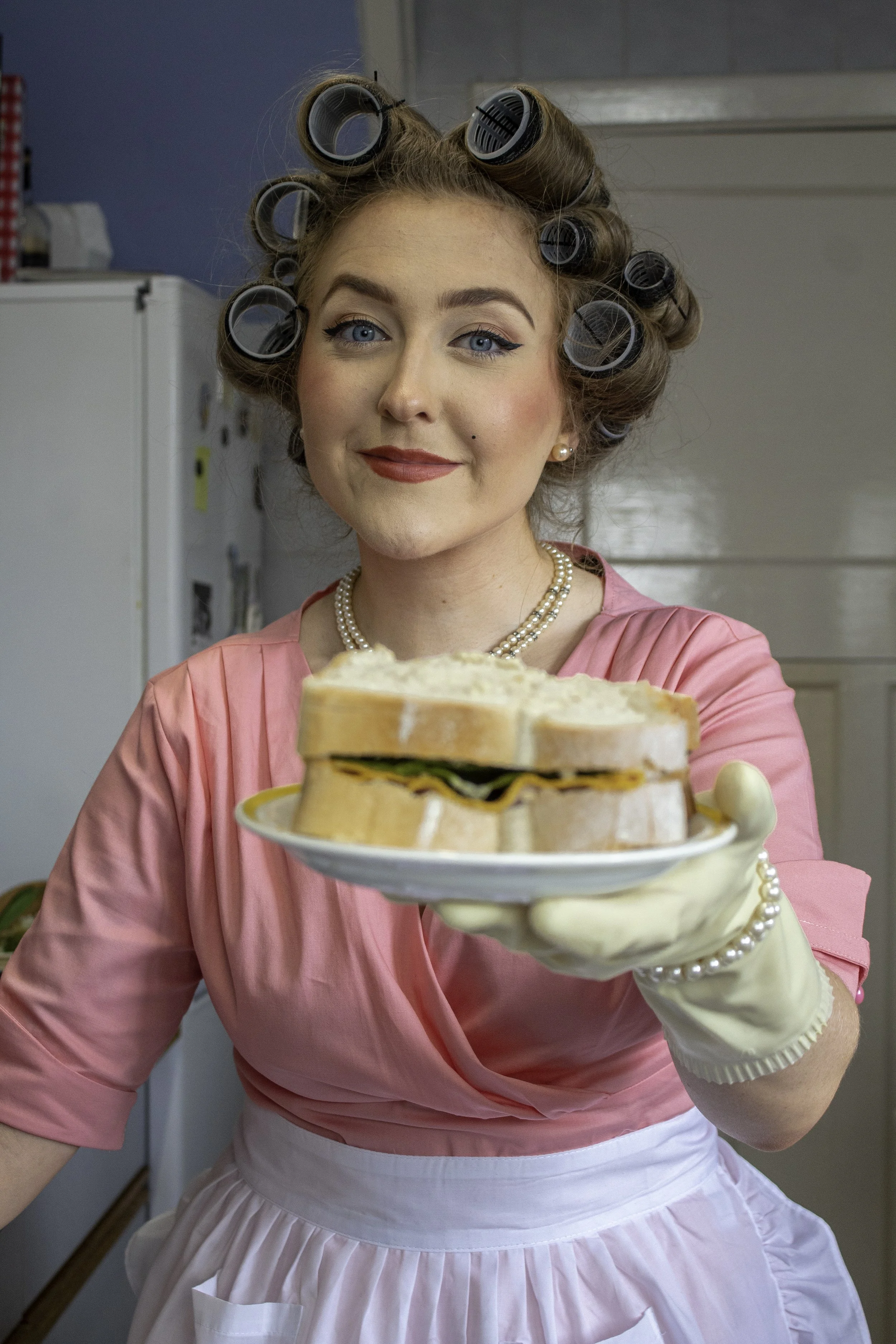 The hair curlers, lipstick, dress and apron were all designed into this characters appearance in order to reference to the traditional 1950’s housewife.