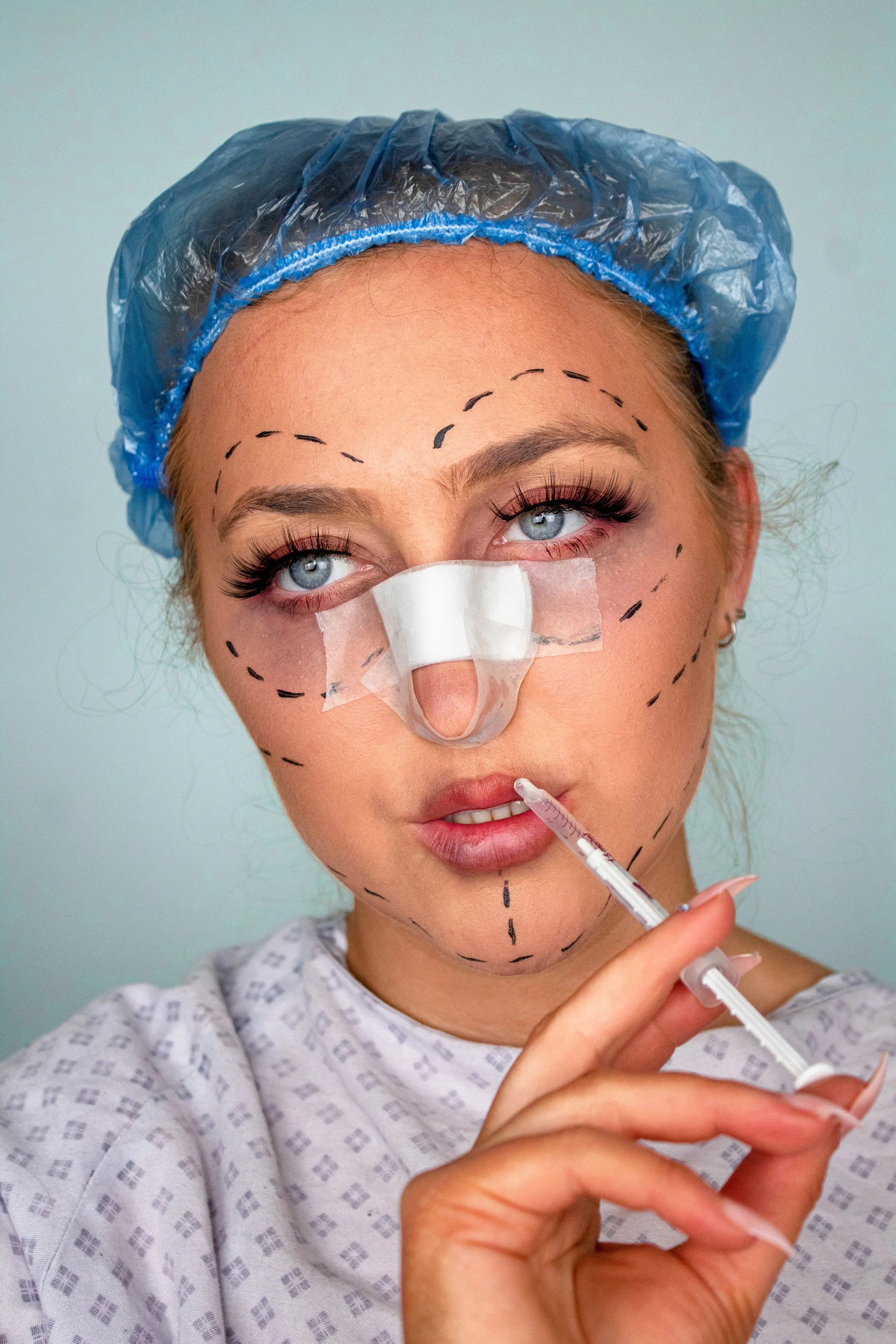 This photoshoot was an exaggeration of how some people view cosmetic surgery and even makeup. “Make sure you take a woman swimming on a first date” is a remark on the internet referring to washing off a woman’s makeup to see what she actually looks like.